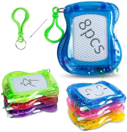 Draw, erase, and draw again with Magna Doodle. This magnetic drawing board allows budding artists to create pictures and designs without the mess of traditional art supplies. Simply use the magnetic pen to draw on the board, and erase with the swipe of a lever for endless creative possibilities.