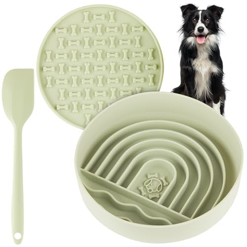 Hertzko Silicone Slow Feeder Dog Bowl Set - Bowl, Lick Mat, Spatula - Silicone Slow Feeder Dog Bowls - Dog Slow Feeder - Slow Feeder Cat Bowl - Cat & Dog Food Bowl - Pet Supplies