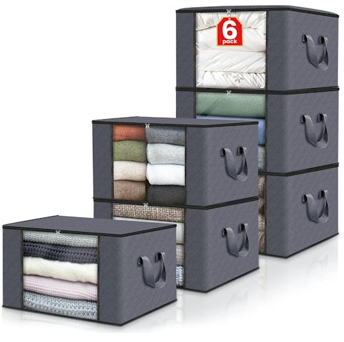These extra-large storage bags are made of a breathable, non-woven fabric, so you don't have to worry about your extra bedding or winter sweaters getting dusty or moist when they're in storage. Unlike other storage bags, these hold a lot — up to one chunky comforter, three blankets, or 25 pieces of clothing — and you'll be able to see what's inside with the clear storage window.