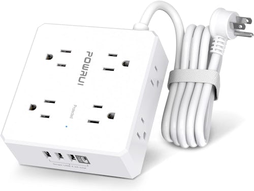 This five-outlet extender has earned an impressive 59,000-plus five-star reviews on Amazon. It offers surge protection and has five three-prong outlets, as well as three USB-A outlets and one USB-C. It screws into your outlet for stability and has a fireproof shell.