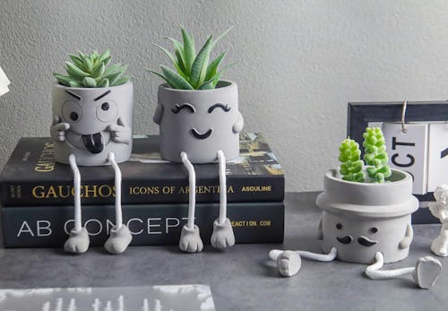 These faux succulent plants create a cute display of cartoonish humor on a desk, shelf, or windowsill. Or choose from three other pot options that are simple and decorative. The plants will never die and don’t need any attention from you. “The perfect addition to our bathroom and they look incredibly realistic,” said one reviewer.