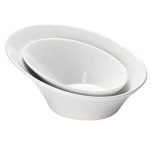 Bruntmor Ceramic Porcelain Salad Bowls - Angled Bowls Ceramic for Salad, Noodle, Pasta, Cereal, Soup - Kitchen Bowl, Ideal for Home and Restaurant - 8.3'' & 6'' - Set of 2 - White