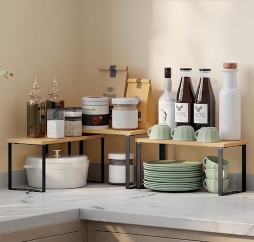 This set of three organizer shelves is the perfect way to create more accommodating storage in your cupboards or on your counters. The shelves nest and stack so you can arrange them into whatever configuration suits your space. And they look pretty enough to set out in the open. They come in two colors.