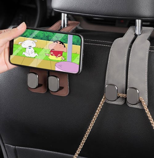 These car hooks are so brilliantly designed that you will think they are part of the car’s original styling. Loop the leather-like material over the headrests to install two hefty and stylish hooks that blend into your upholstery. Now you have a place to put your bag, groceries, and road trip supplies. The hooks will also hold a phone or tablet so passengers (or rowdy kids) can enjoy hands-free entertainment.
