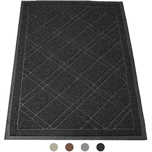 iPrimio - Cat Litter Mat with Plaid Design - Phthalate & BPP Free - Jumbo (42"x 35") (Black)