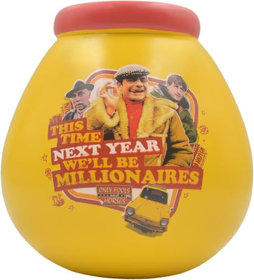 The Only Fools and Horses "This Time Next Year - Smash to Open" collectible adds a nostalgic touch for fans of the iconic British sitcom. This item mimics the classic gag from the show where Del Boy, ever optimistic, would proclaim that “this time next year, we’ll be millionaires.” Designed to capture the show's blend of humor and charm, the collectible features a “smash to open” element, reminiscent of the famous “Trotters Independent Trading” logo. It’s a fun nod to the series’ memorable moments and a great piece for fans looking to celebrate their love for the show.