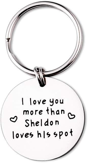 This keychain is a fun and thoughtful gift for The Big Bang Theory fans, especially those who get a kick out of Sheldon Cooper's obsession with his spot. The message, "I love you more than Sheldon loves his spot," is a cute and clever way to show someone how much you care. It's made from sturdy materials, making it a practical accessory for your keys.