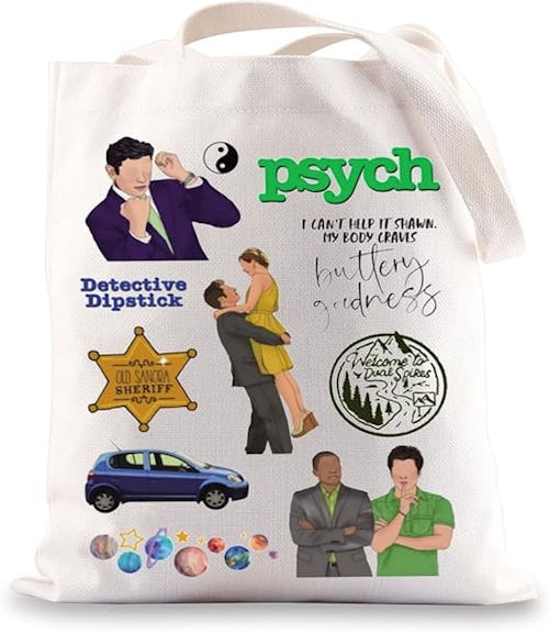 This tote bag is perfect for Psych fans, featuring the main characters. Made from high-quality cotton canvas, it offers a soft yet durable option for carrying your essentials. The bag measures 14.56 inches by 12.59 inches, providing plenty of space for items like books, keys, and electronic devices. With sturdy handles and neat overlocking, it's suitable for various uses such as a work bag, shopping bag, or travel bag. The 3D printed design ensures the patterns and quotes remain clear and intact.