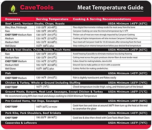 Cave Tools Meat Temperature Food Magnet Sheet For Internal Temperatures Cooking Strategies and Caryover Cook Times - Pitmaster BBQ Accessories for Smokers, Refrigerators and Grills - Small