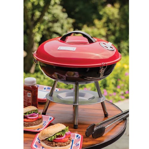 At just 14 inches and only 2 pounds, this portable grill is small, compact, and convenient enough to take anywhere — from the backyard to the campsite. It has a built-in removable chrome-plated cooking rack that evenly distributes heat, and a dual venting system to better control the temperature.