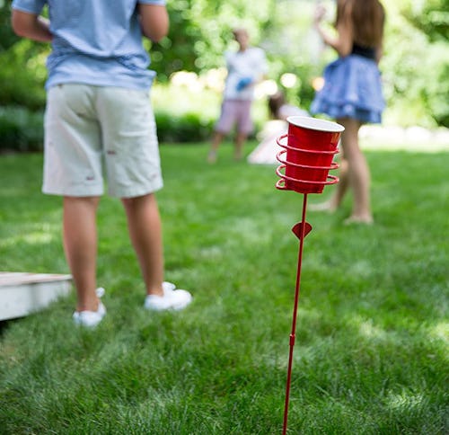 Don’t sleep on this fun ring toss game as a way to entertain the entire family during your next backyard party. It comes with a wooden board that can be installed on a tree or porch post, six red rubber rings, six black rubber rings, and 14 metal hooks with different numbers, allowing you to play a variety fo games. Now, split into teams and try to get as many rings on as many hooks as you can.