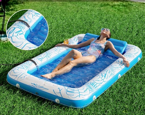Tan — with plenty of SPF, of course — and cool off at the same time when you have this inflatable pool. It has a super shallow base with raised edges that you can fill up with water and lounge in but still stay above the surface line. You can use it as a makeshift pool in your yard, or as a floaty in a real pool, because of course, it has a cupholder.