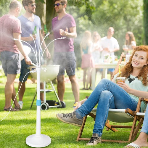 Keep yourself and your guests cool during your next backyard party with this standing sprinkler. It connects to a water source like a hose and uses five nozzles to send a light and misting spray around the area. You can adjust the nozzles to be at the angle you want and the height of the stand for optimal cooling.