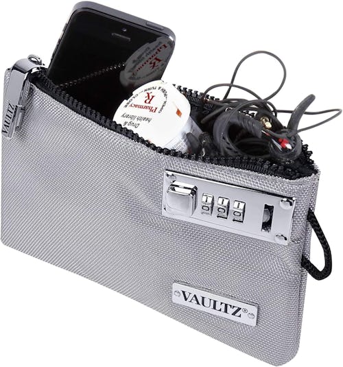 Vaultz Money Bag with Lock - 5 x 8 Inches, Men & Women's Locking Accessories Pouch for Cash, Bank Deposits, Wallet, Medicine, Phone and Credit Cards - Gray
