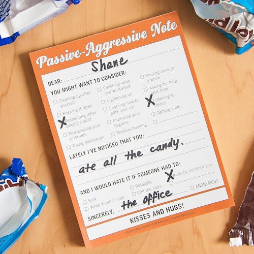 Feeling spicy? Leave these passive-aggressive notes for your family, friends, or even coworkers. The memo pad includes 50 sheets of notes you can fill in and personalize to get your message across. You just might want to be sure the recipient has a good sense of humor like you do.