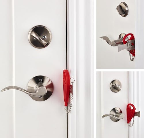 This portable door lock adds an extra layer of privacy and security while at home or while traveling. It fits most inward-swinging doors and installs in seconds without tools, rendering doors unable to be opened, whether they have an existing lock or not. It’s a good idea to keep one in your bag at all times since you never know when you might want some added security.