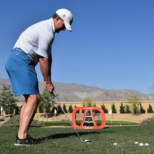 Improve your golf game with this pop-up practice net you can set up on any lawn. It’s made for practicing all chip shots and boasts a portable design that’s easy to set up and take down in just a few seconds. A handy carrying case is also included.