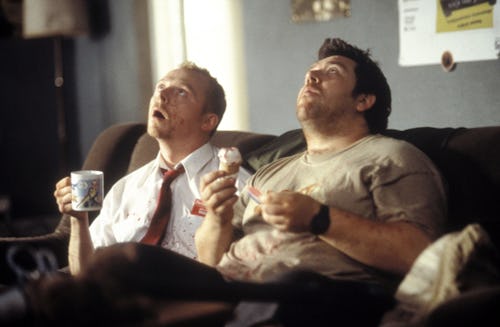 So for the first 15 minutes or so, you’re watching what’s essentially a big-screen remake of Pegg, Wright, and Jessica Stevenson’s groundbreaking 1999-2001 sitcom Spaced. Then the zombies appear.