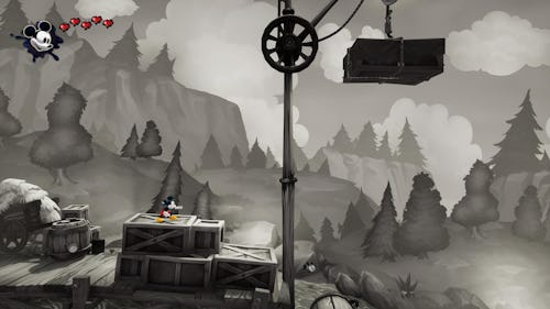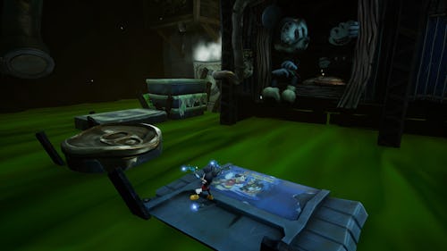 The 3D platforming works well enough. Mickey can double jump over gaps, spin attack enemies, or use a magical paintbrush to interact with the environment. The paintbrush is the crux of how the game tries to keep things fresh, letting players use thinner to erase parts of the environment or paint to create objects and fill in missing gaps. It’s a great conceit that rarely feels like it's being used to its fullest creative potential.