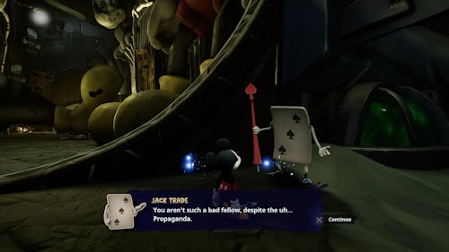 It’s cool that choice exists in Epic Mickey. There are two different endings so these choices eventually stack up. But my playthrough still felt a little hollow. It's hard to recognize the impact of these choices at the moment, a seemingly missed opportunity as the open-world sections could have reflected Mickey’s choices.