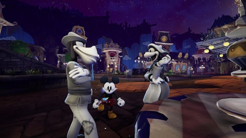 After spin-attacking my way through enemies in the game's introductory level, I enter Epic Mickey’s first hub world: Mean Street.