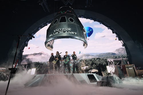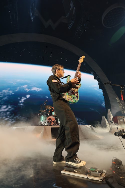 Throughout the new 2024 “Voyage to the Blue Planet” concert, Weezer presents a kind of miniature sci-fi movie, which plays out as the band sets out on a mission to save the Blue Planet (which may or may not be Earth). The first half of their 26-song set list features a mix of their greatest hits as they travel on a spaceship as depicted on a massive screen behind the band. (Once Weezer reaches their destination, they play the entire Blue Album from front to back.)