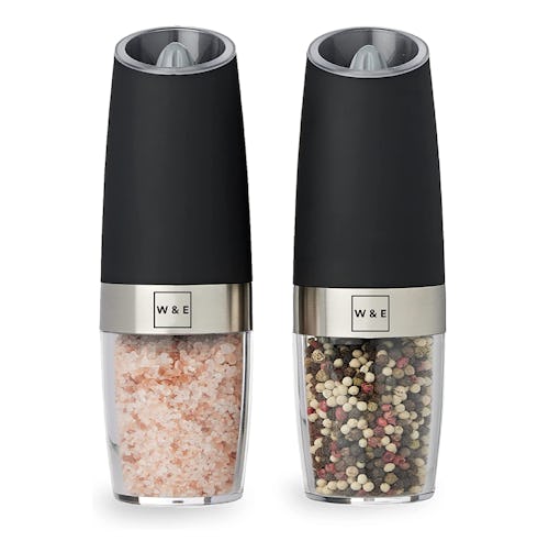 Grind fresh pepper and salt over your meals with this battery-powered grinder set. Each grinder has an easy-to-fill wide opening and you can adjust them to three levels of coarseness. They also have a small LED light, making it easy to properly season your food in a dim room.