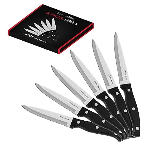 Master Maison 6-Piece Premium Steak Knife Set | 6 German Non-Serrated Stainless Steel Kitchen Steak Knives With Gift Box | Anti-Fatigue, Ergonomic, Full-Tang Triple-Riveted Handle, Black
