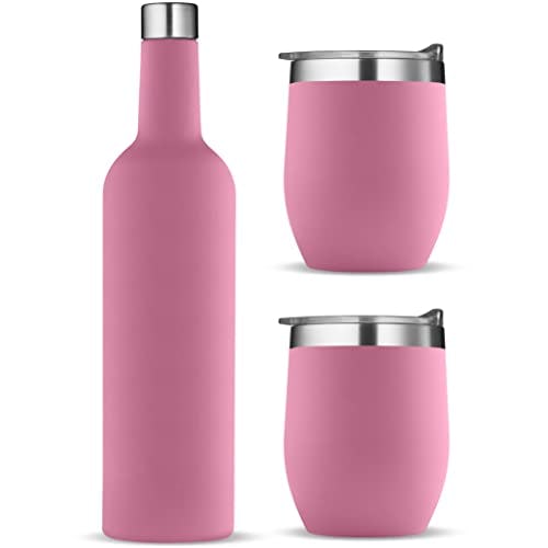 Wine Chiller Gift Set - Vacuum-Insulated Wine Bottle 750ml & Two Wine Tumbler With Lids 16 oz. Made of Shatterproof 18/8 Stainless Steel & BPA-FREE Lids, Perfect Wineglasses for Travel, Picnic, Etc