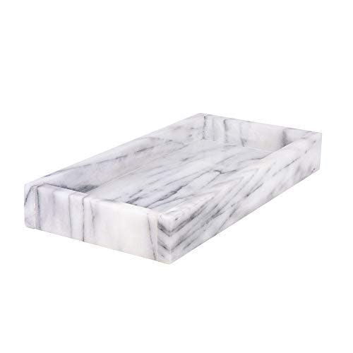 Marble Tray for Vanity and Bathroom Counters, 12 Inch White, Genuine Marble