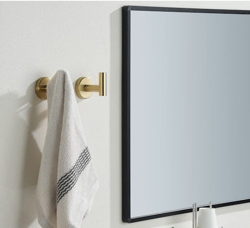 Hang hand or bath towels in style thanks to these sturdy hooks. They’re made from waterproof stainless steel (that won’t get rusty over time) with a brushed gold finish that looks like luxury. Installation is straightforward — all of the pieces to do so are included.