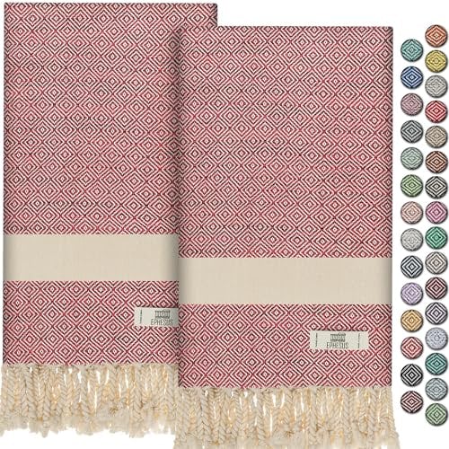 EPHESUS TOWELS Hand Towels - Set of 2 | 18" x 30" - Decorative Turkish Hand Towel for Bathroom, Kitchen, Guest, Face, Hair, Tea, Dishcloth (Diamond, Coral)