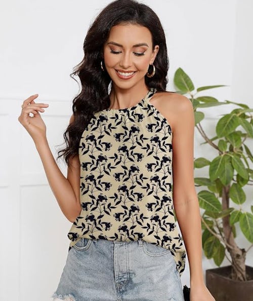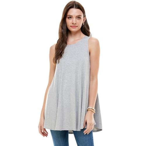 When you don’t know what to wear, slip on this sleeveless tunic top with a scallop round hemline. Its versatile design is perfect for layering, and its rayon fabric is unbelievably soft. Since it’s on the longer side, it pairs well with pants and jeans. Woven with spandex, it stretches for a comfortable fit.