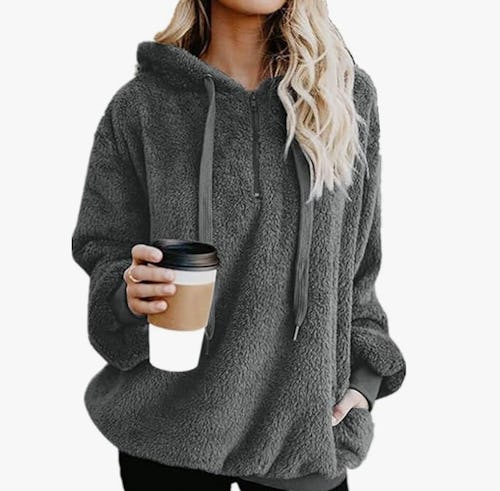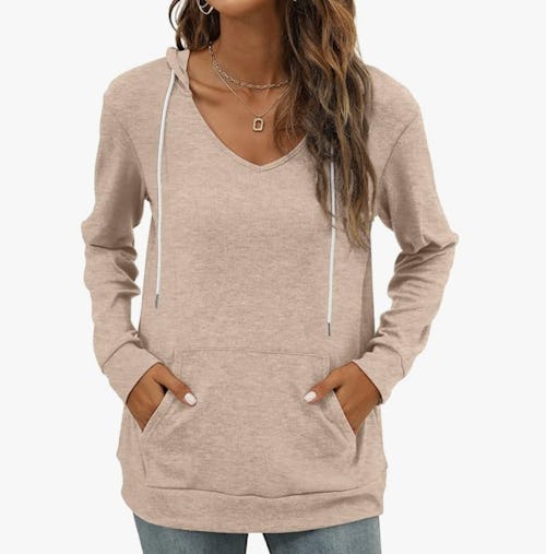 Everyone should have a staple sweatshirt, like this kangaroo pocket hoodie. If you’re constantly on the go, its pocket is a lifesaver. Drawstrings let you adjust its hood, and its soft fabric is so comfortable for all-day wear. Rayon and spandex in its fabric give it a little stretch. Plus, it runs slightly oversized for a fit that feels like a hug.