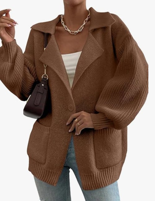 This open-front knit sweater looks a lot like your favorite menswear. Its oversized collar and structured fit borrow from blazers, but it’s super soft and cozy. Chunky knit sleeves switch up its texture. You’ll also be obsessed with its huge pockets. Wear it to work to stay cool in any air-conditioned space.