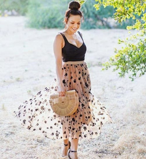 Spinning around in this mesh tulle midi skirt will make you feel like a princess. Its stretchy elastic waistband lets you breathe. Plus, its double-layered design keeps you covered, so you can wear any color underwear. Best of all, its 3D floral appliqués add a high-fashion flair, even though it costs less than $30.