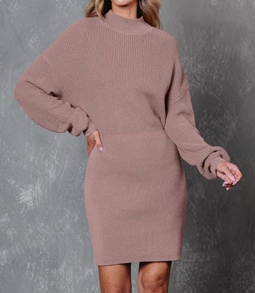 Cold weather doesn’t have to mean covering up — just look at this mock neck sweater dress. Its ribbed knit fabric keeps you cozy, but it hits above the knees. Trendy details like a mock neck, lantern sleeves, and a cinched waistline make it a stylish staple. Wear it with tights and heels to the office, or dress it down with sneakers for a day on the town.