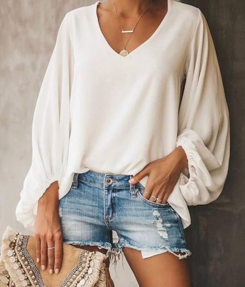 One Reviewer Wrote: “It can be worn out or tucked in, either way it’s stunning and I received many compliments straight out of the package. The puffy sleeves are just right and not too overwhelming.” — SoCalReader
