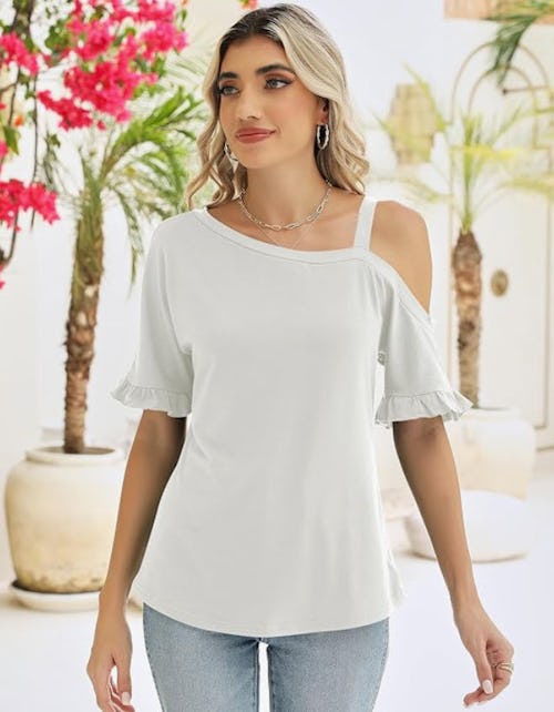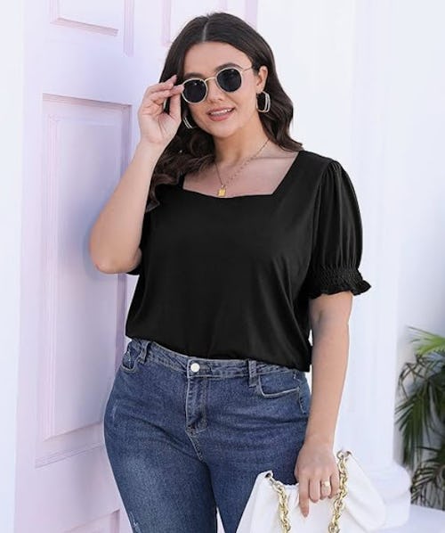This trendy puff-sleeve shirt is perfect for a morning at the farmer’s market. Its loose, breathable fit is great for any weather, and its square neckline adds a pop of personality. You’ll also like its versatile medium length, which works with any bottoms. The ruffles on its sleeves are an adorable finishing touch.