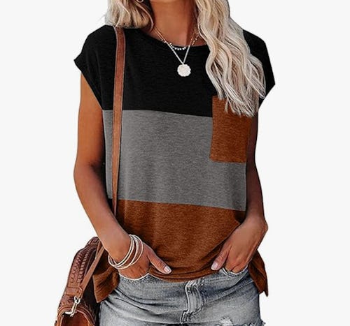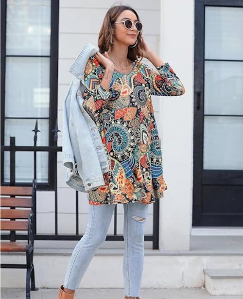 This three-quarter sleeve top is long enough to wear with jeans or leggings and is bound to get a ton of compliments. Its loose fit offers up plenty of room for movement, and its irregular handkerchief hemline helps it stand out from the other tops in your wardrobe. Since it’s available in over 60 colors and prints, you’re bound to find a few that’ll become part of your weekly rotation.