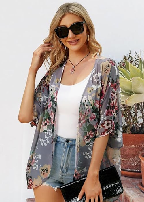 If your outfit needs a cute finishing touch, throw on this floral print cardigan. Its lightweight chiffon fabric gives it an airy feel, and it’s soft and gentle on your skin. Its stunning florals are so cute in any season. Plus, its open-front design puts your look on display. It makes a great layer for a crop top and jeans and can also add more casual vibes to a dress.