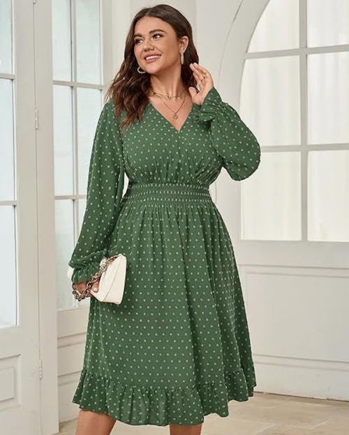 Take a deep breath — this Swiss dot midi dress has an elastic waistband that will let you move and breathe comfortably all day. You’ll also adore its whimsical pattern, which is sure to put a smile on your face. Its ruffled sleeves and hemline add even more fun details. Wear it with heels at a wedding, or platform boots on a date night.