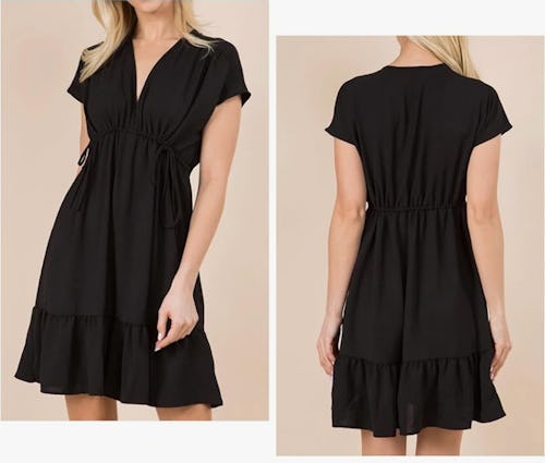 For an elegant look without the effort, try this ruffled A-line dress. Its lightweight fabric and short sleeves make it perfect for any weather. Use its drawstring waist to adjust its fit, and style it for fall and winter with a trendy jacket. Its ruffled hem and subtle ruching add a delicate detail while providing a little extra coverage.