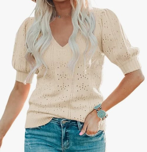 This Puff-Sleeve Sweater With A Pretty Pointelle Knit
