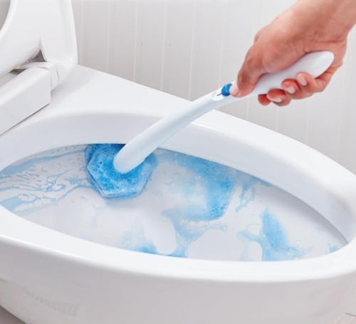 Keep your bathroom sparkling with this disinfecting toilet wand system, which includes a storage caddy and disposable sponges pretreated with Clorox cleaner. The wand allows for easy scrubbing without ever touching surfaces, and the sponges are designed to tackle stubborn stains under the rim and in hard-to-reach areas. Simply press the button to eject the used head into the trash for a quick, germ-free cleanup.