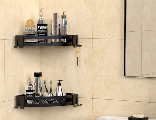 This adhesive shelf set provides ample space to store your shampoo, soap, and other shower essentials without having to drill holes in your wall. Its rustproof aluminum material and quick-drain design ensure your items stay dry and secure. Plus, it comes with a special holder for your razor, making it even more practical — and it’s available in a clear plastic design, too.