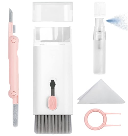 Sold in six colors, this electronics cleaner kit includes a double-headed cleaning pen, a retractable brush with a screen cleaner, a microfiber cloth, a spray bottle, and a keycap puller. Together, they help you remove dirt, crumbs, and smudges from your keyboard, earbuds, and phone screens.