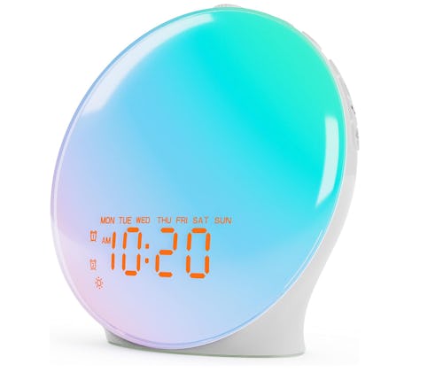 If you want a more gentle start to your day, this sunrise alarm clock is perfect for heavy and light sleepers alike. The LED display gradually brightens the room from 10% to 100% brightness, simulating a sunrise to help you wake up more naturally so you feel refreshed. Plus, it comes with 15 colorful light settings, dual alarms with unlimited snooze, and eight calming sleep sounds.