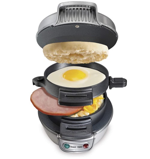 “I am absolutely obsessed with this,” one reviewer raved about the Hamilton Beach breakfast sandwich maker. Using multiple tiers of non-stick plates, it toasts bread, warms meat, and cooks eggs — all at the same time. Most parts are removable and dishwasher-safe for easy clean-up, too.