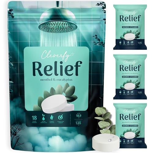 Cleverfy Shower Steamers Aromatherapy - 18 Pack of Menthol & Eucalyptus Shower Bombs with Essential Oils for Relaxation and Nasal Congestion. Eucalyptus and Menthol Shower Steamer